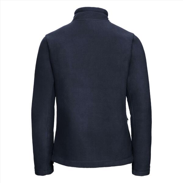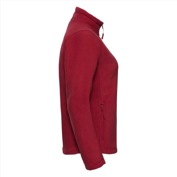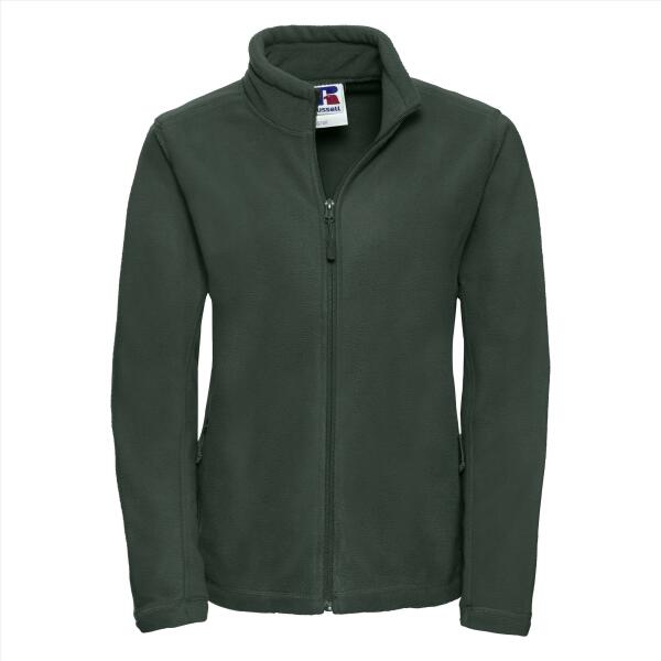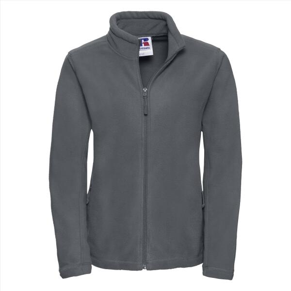 Iets getailleerde dames fleece jas met elastisch koord met stoppers in onderboord. Pluisvrij en een gladder oppervlak voor het gemakkelijk te kunnen borduren van de fleece. Deze fleece is van fijn gebreid materiaal met een hoge dichtheid en biedt veel warmte bij weinig volume. Heeft 2 zijzakken met rits en ingezette mouwen.