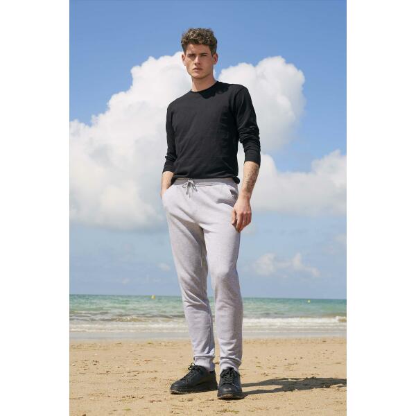 Een joggingbroek voor heren gemaakt van organisch katoen en gerecycled polyester.