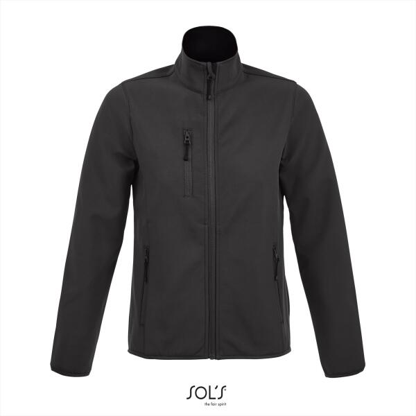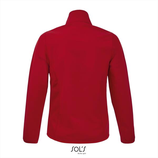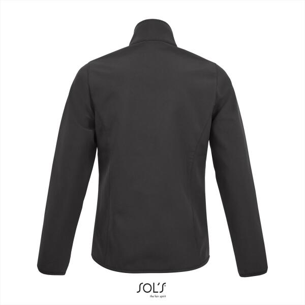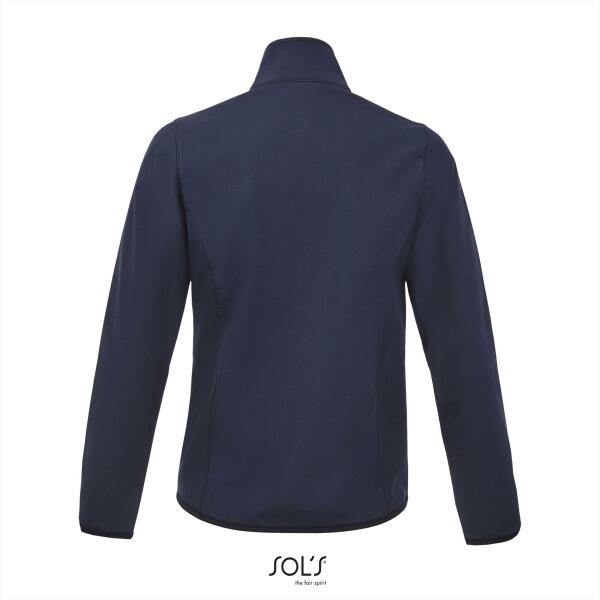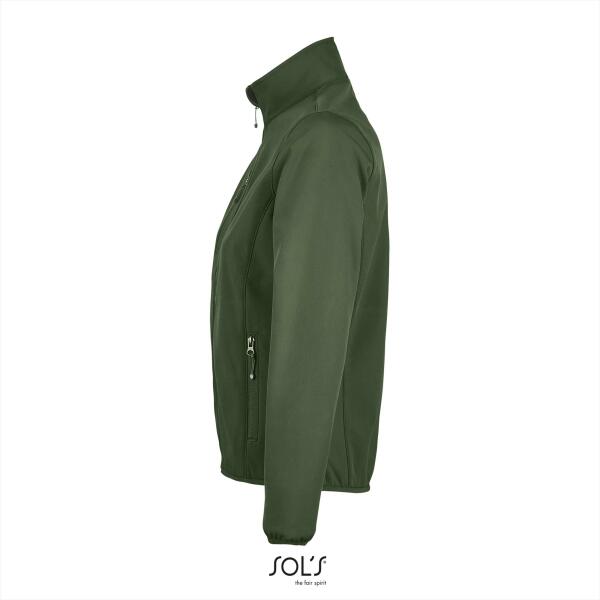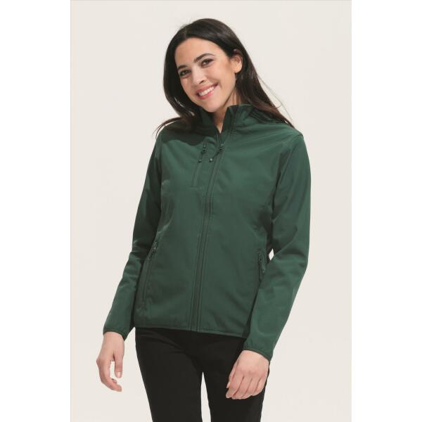 Dames softshell met volledige ritssluiting. 2 zijzakken en 1 borstzak met ritssluiting. Mouwen en boord afgezet met toon-op-toon elastisch biasband. Zonder capuchon. Ademend, winddicht en waterafstotend. Stretch.