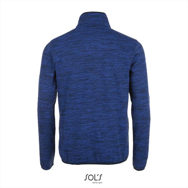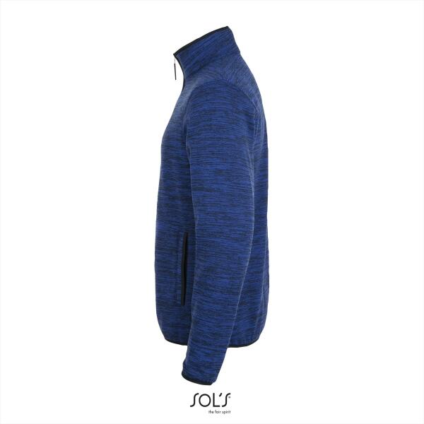 Moderne 2 kleurige fleecejas met mouliné-effect. Brushed binnenkant, 2 kleurig. 2 zakken. Contrasterende elastieke band op de mouwen en onderaan. Ronde kraag.