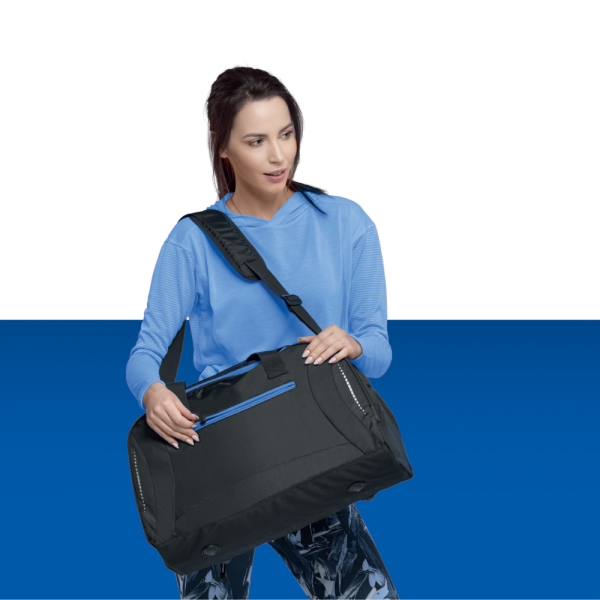 Originele sporttas van moderne materialen die bestand zijn tegen mechanische schade en tegelijkertijd extreem licht zijn. Hij heeft één ruim hoofdvak en verstevigde handgrepen om in de hand te dragen en een verstelbare schoudergreep. Het product is gemaakt in overeenstemming met het REACH-certificaat.